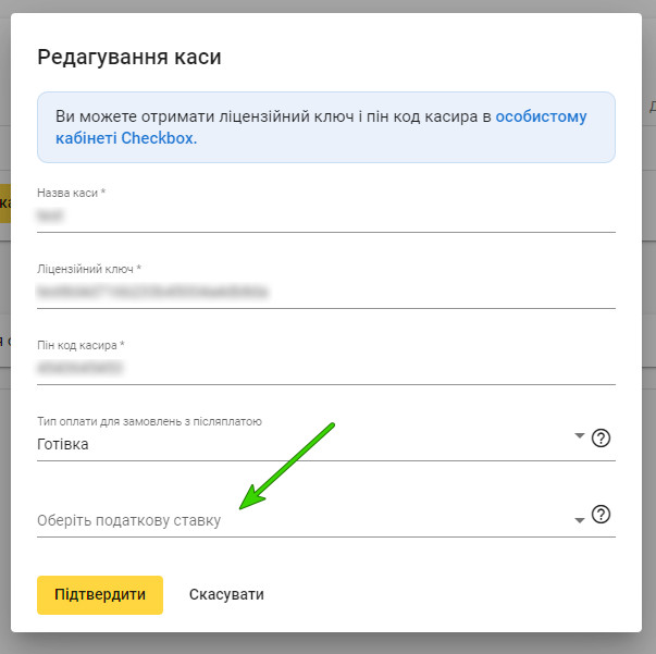 2. (Не обов'язково) Закріпіть за касою в RCRM податокову ставку, щоб при створенні чека вони обиралась автоматично (можна буде обрати іншу якщо треба).