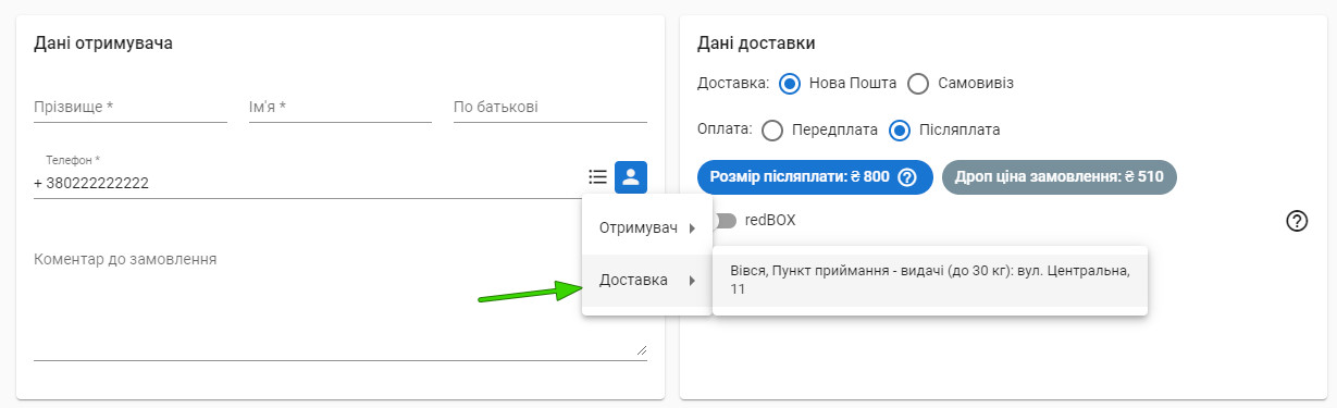 Можливість перегляду статистики попередніх замовлень клієнта та обрати фіо або адресу відправки.